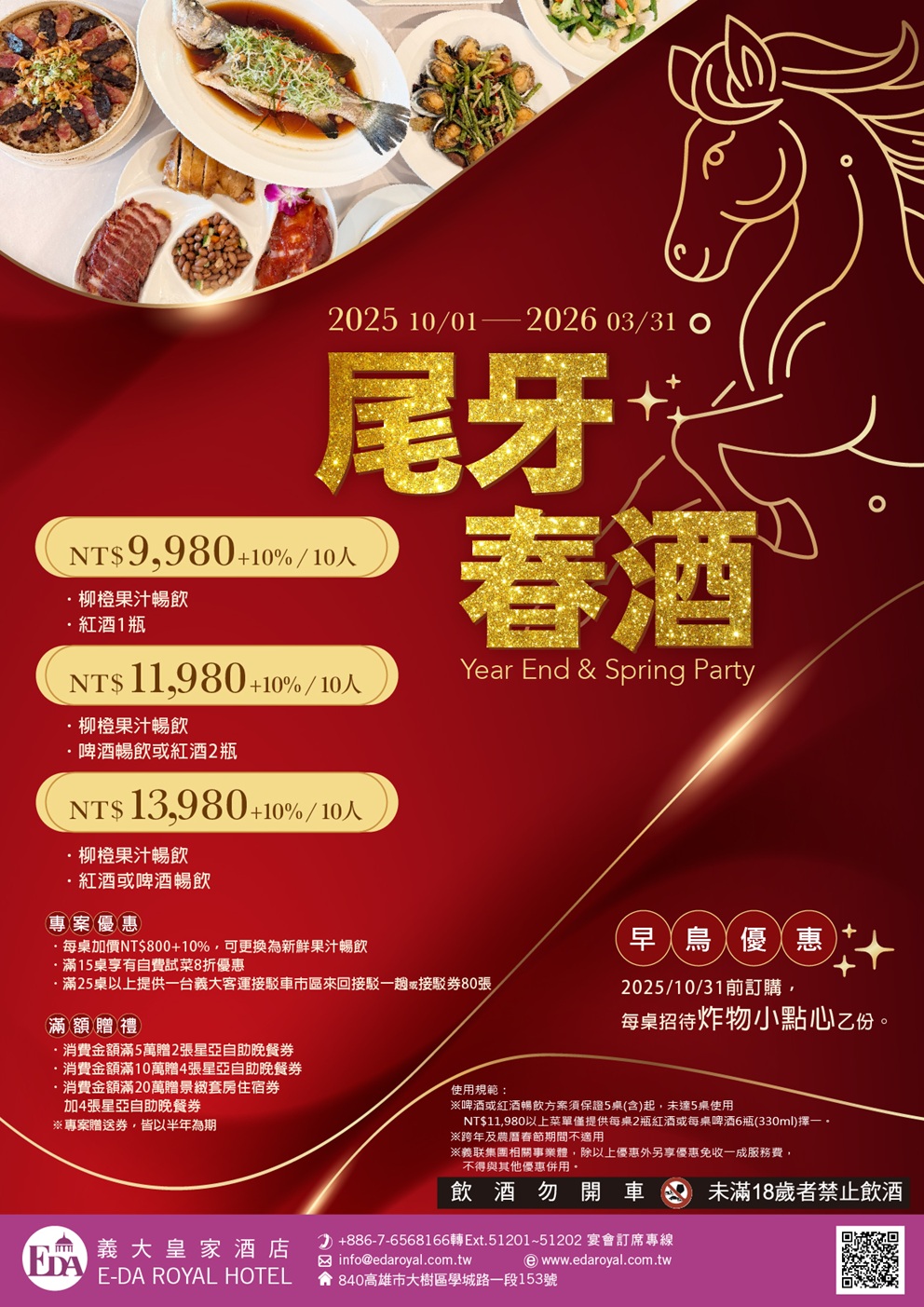 瀏覽數 53 次 廠商 義大皇家酒店 優惠期間 2025-10-01 至 2026-03-31 優惠倒數 資料來源 官方網站 優惠分類 高雄餐廳優惠 優惠訊息勘誤回報 分享 GO 官網看最新優惠 本網站所刊登之優惠訊息,以店家官網或現場公告為準!*因各家行銷活動更新快速,本站提供的優惠活動分享資訊,可能有發生非同步的情況,也歡迎店家主動通知,感謝各方體諒!
