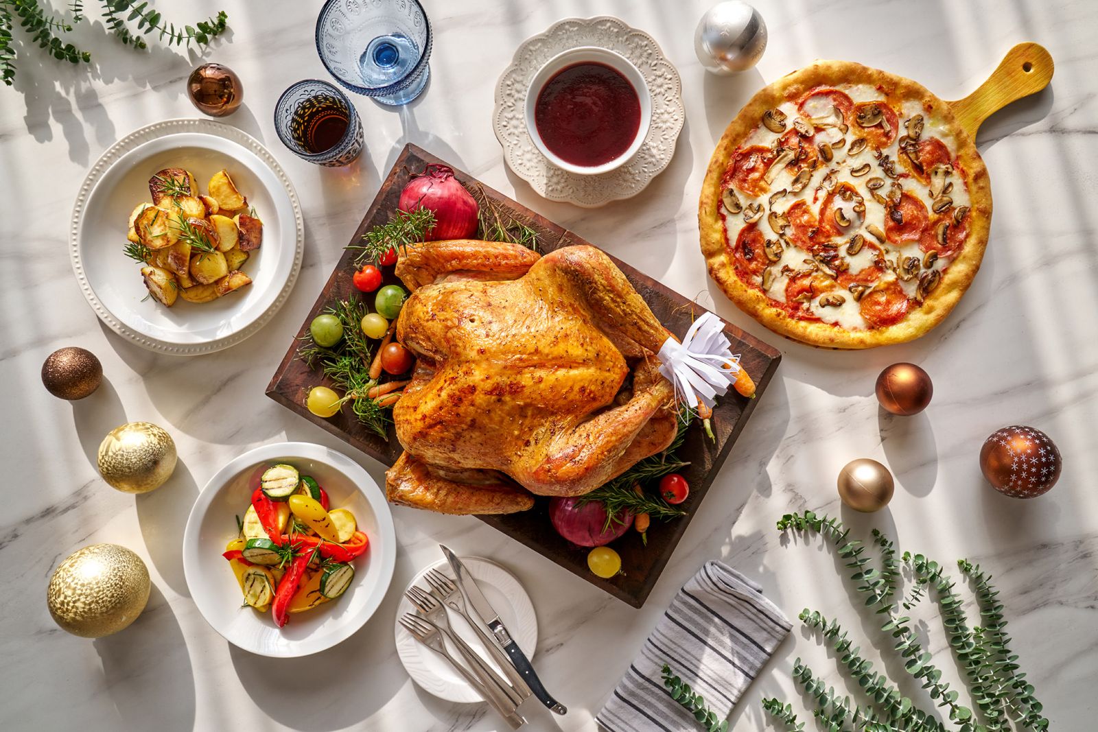 在這個充滿感恩與祝福的季節,台北美福大飯店的GMT 義大利餐廳獻上節慶限定「爐烤火雞禮籃」,嚴選6公斤的火雞,烘烤至金黃色外皮,香嫩多汁。品嚐時搭佐蔓越莓肉醬汁,甜香交織。豐盛的禮籃另搭配義大利籍主廚烘烤的瑪格麗特風味披薩、季節時蔬,以及充滿酒香與節慶氣息的義式聖誕麵包,為您的節慶餐桌增添風味。