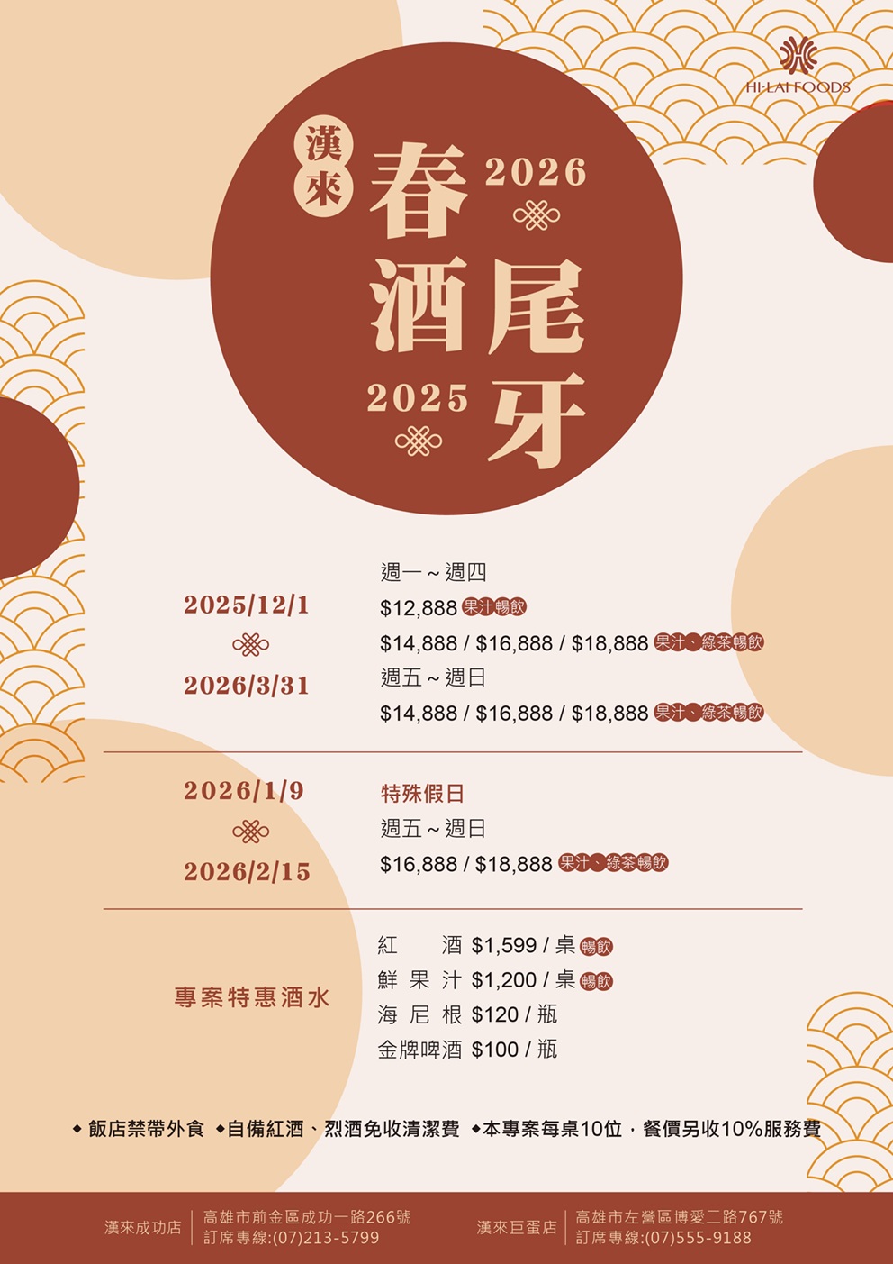 《高雄漢來宴會廳&巨蛋宴會廳》尾牙春酒專案