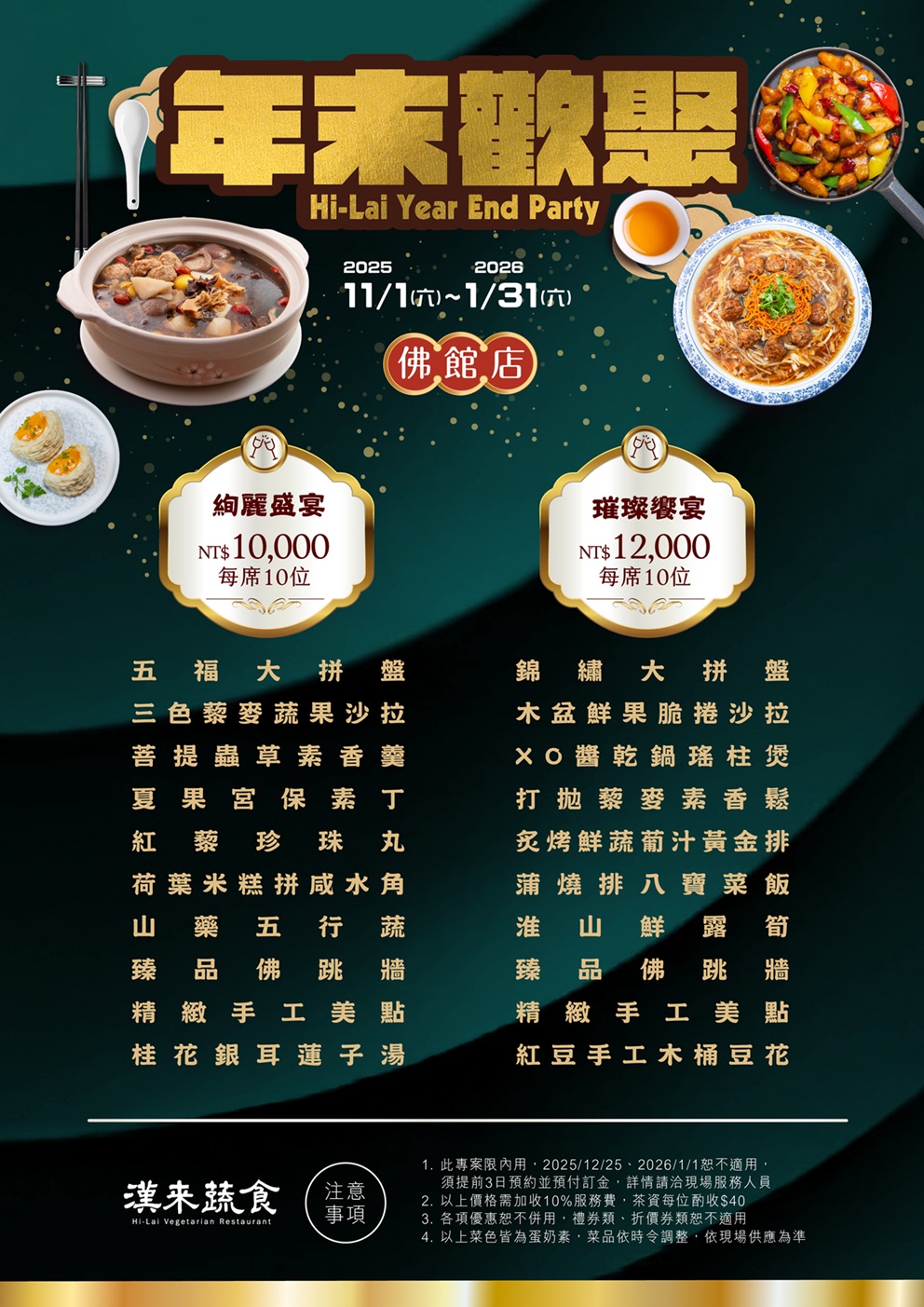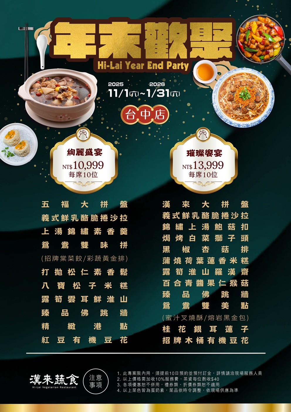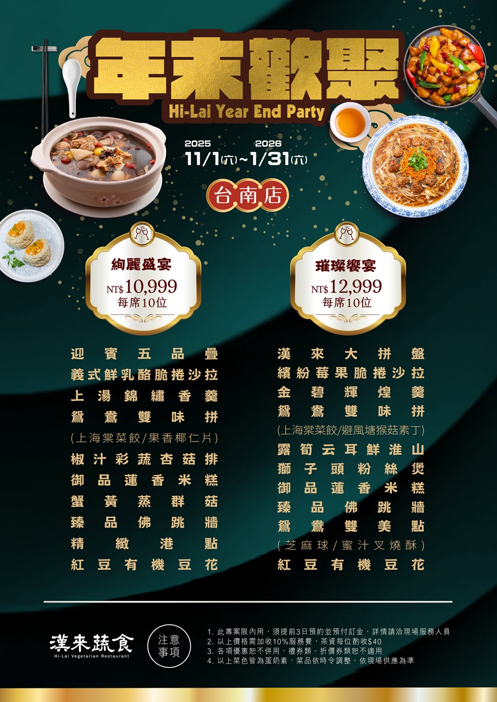 年末歡聚,讓漢來以精緻蔬食盛宴慰勞您整年的辛勞!