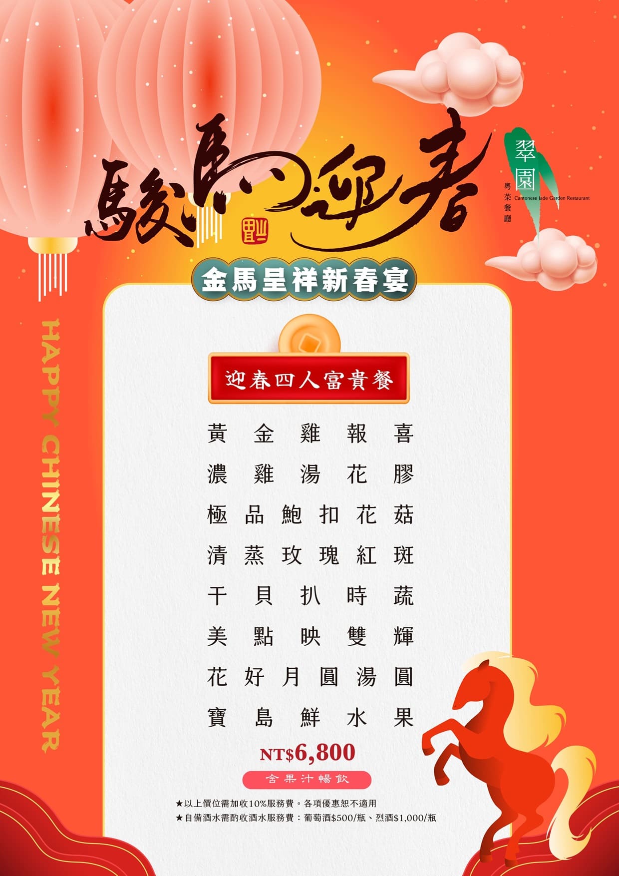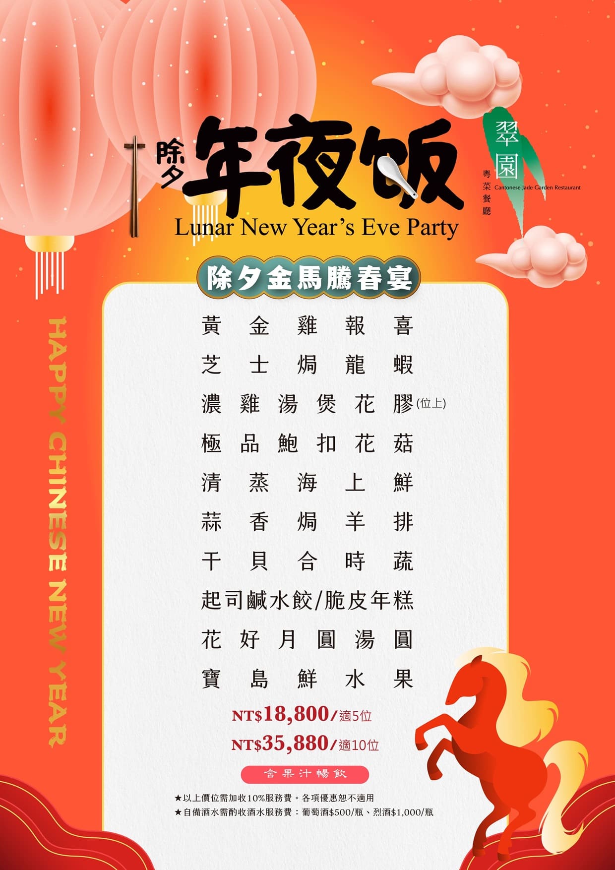 - 自備酒水需酌收酒水服務費:葡萄酒每瓶500元、烈酒每瓶1,000元
